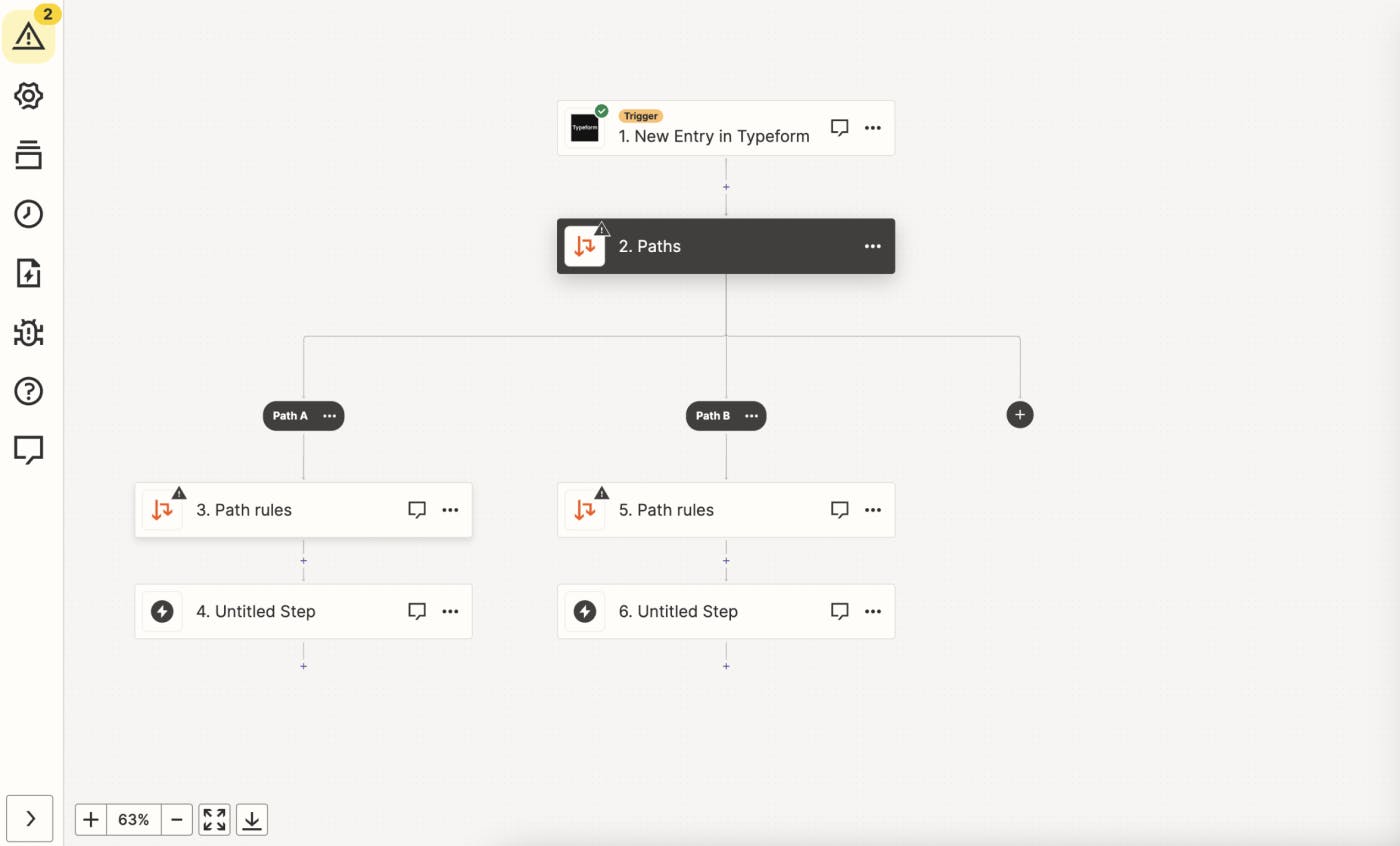 Paths are Zaps set up with conditional workflows based on if/then logic which allow for rules to be set at each step of a workflow. It follows the same trigger-action framework as other Zaps but allows for branching options based on conditions to be set at each step of a workflow. Paths can also be nested to help cover all possibilities.