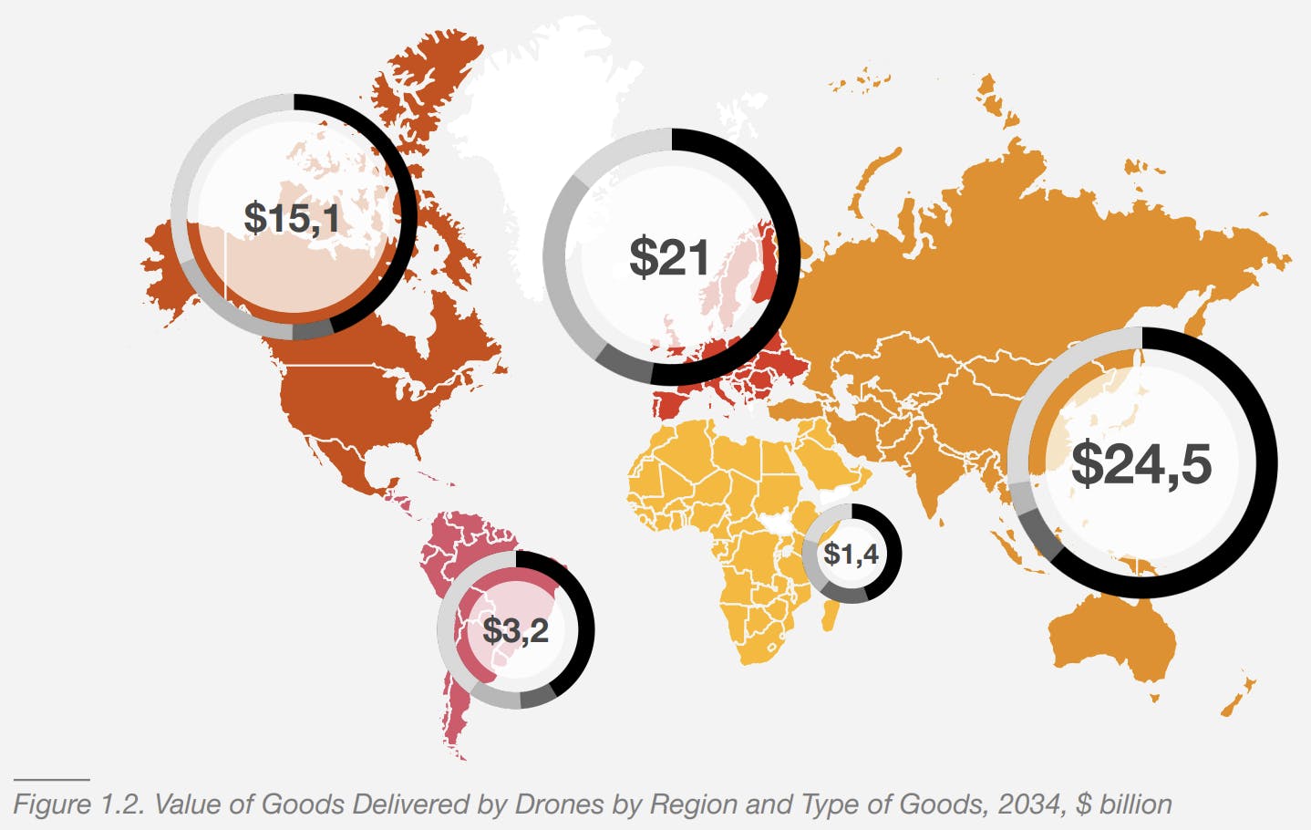 Drone delivery is becoming an increasingly viable way to not only deliver medical supplies but also conduct a variety of commercial deliveries. PwC projects that the total value of goods delivered by drones could reach $65 billion by 2034, up from $251 million in 2024. The global market for delivery drones was valued at $873.4 million in 2023 and is expected to reach a size of $10.5 billion by the end of the decade. In the US, growth in this market is being driven by shifting consumer expectations, which place a premium on fast delivery. Companies like Amazon began experimenting with drone delivery in 2013. A decade later, in November 2023, Amazon had conducted 110K drone deliveries in the US. However, regulatory challenges remain a significant obstacle to drone deliveries reaching scale in the US and have caused significant delays.