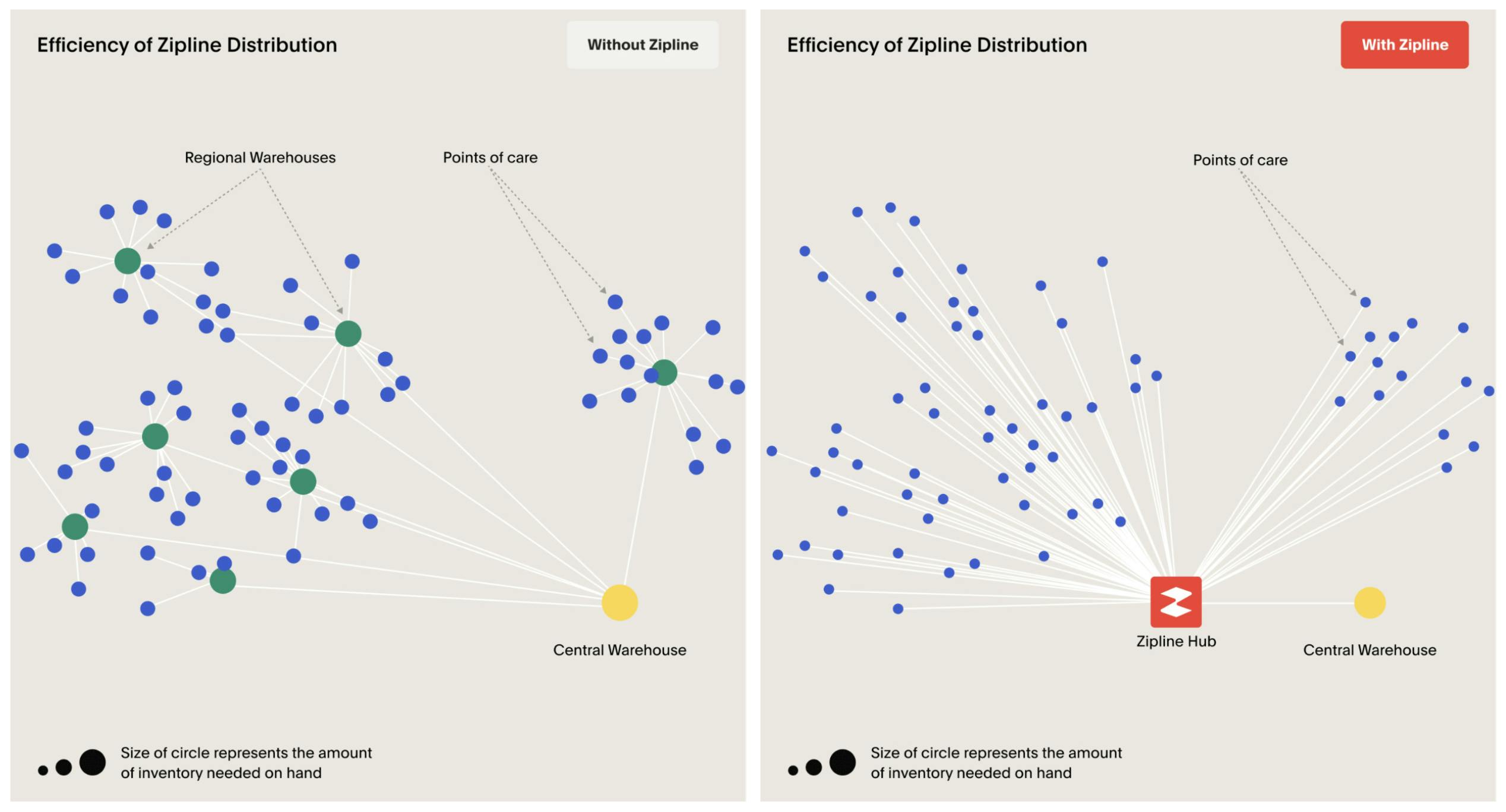 “We started with blood, which is that canonical use case for on-demand delivery where it has a shelf life way shorter than you imagined. It’s always scarce no matter what country you’re in, so you want to be able to hold it until you know exactly which blood types are needed in which location, so you don’t waste it. You want to serve as much of the country from a few locations as possible.”