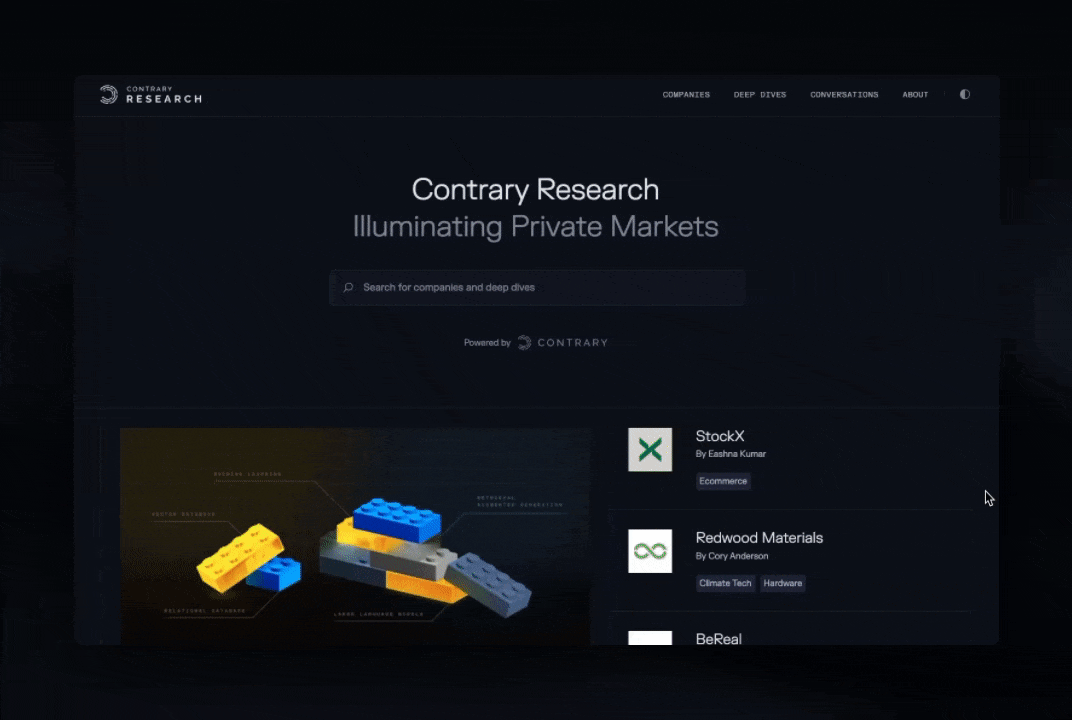 Contrary Research resonated with founders, investors, operators, journalists, limited partners, and general fans of technology all because private market companies are notoriously difficult to unpack.