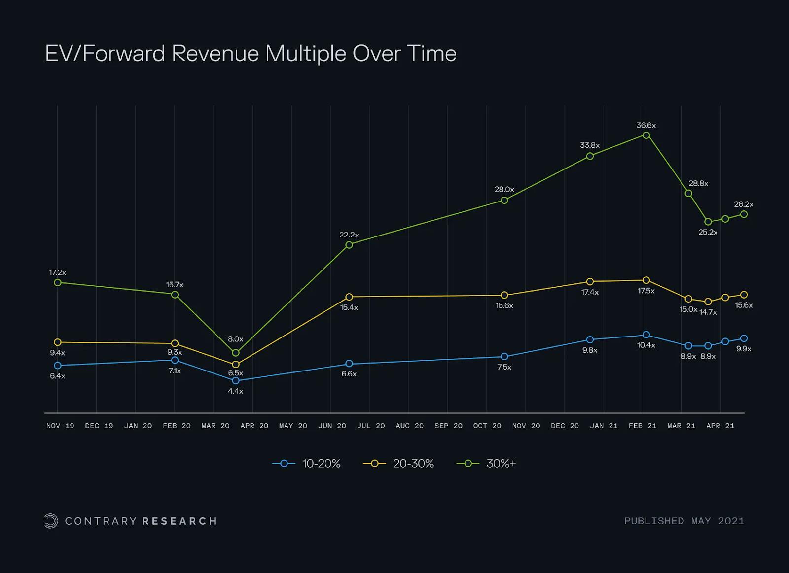 Many of the fastest-growing public companies of the last 15 years have been shaped by philosophies like “move fast and break things” and “blitzscaling.” Public markets rewarded companies that chased growth over everything with heightened valuations. In 2020 and 2021, the relationship between growth and revenue multiples surged: