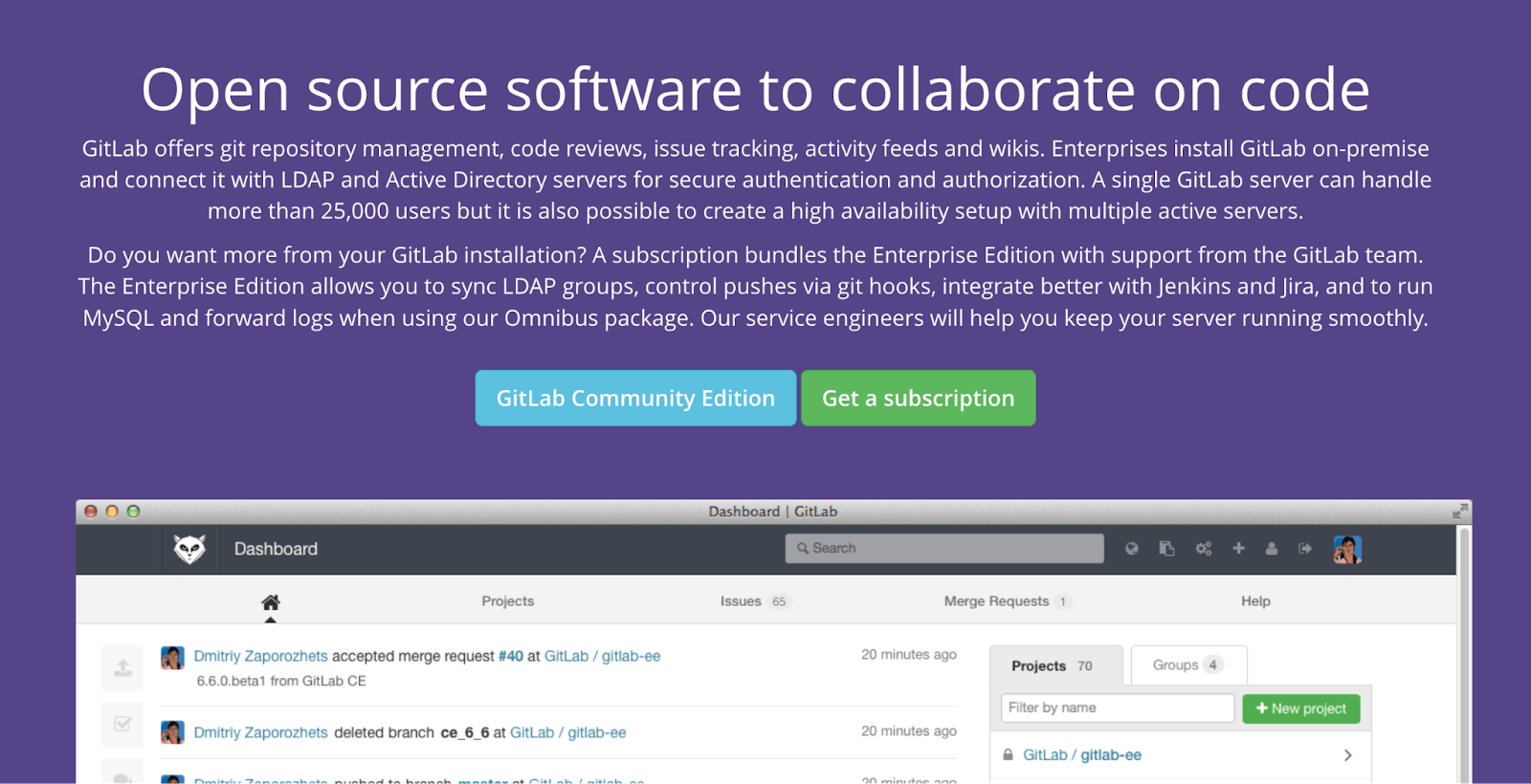 GitLab, on the other hand, is focused on building their end-to-end platform on a common code-base. This further emphasizes their vision of becoming “the one DevOps platform.” GitLab was founded in 2014, and when you look at their early messaging on their website, they didn’t start out with this vision of a unified platform. The emphasis of the message was on open source, and the ability to collaborate on code.