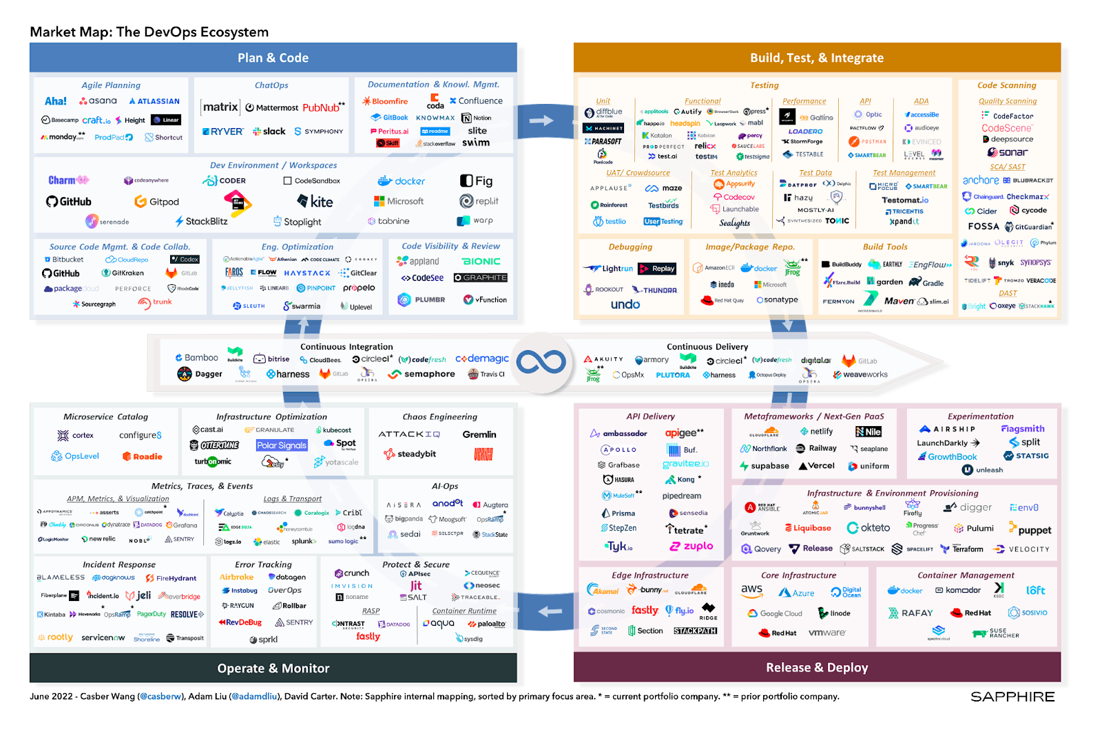 Consolidated Toolchain: As it becomes more critical to drive efficiency in the software development lifecycle, companies will look to move more of their DevOps stack onto the same platform. This will favor companies that have built multi-product platforms over best-in-class point solutions, and set the stage for what companies will become dominant in DevOps going forward.