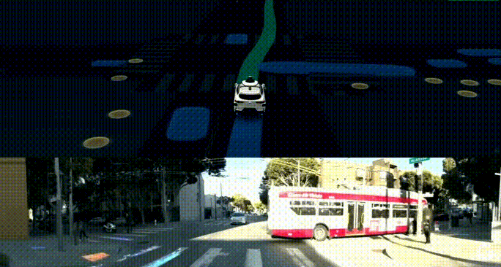 In another example, Waymo’s sensors were able to detect a pedestrian who was behind a bus and avoid a collision: