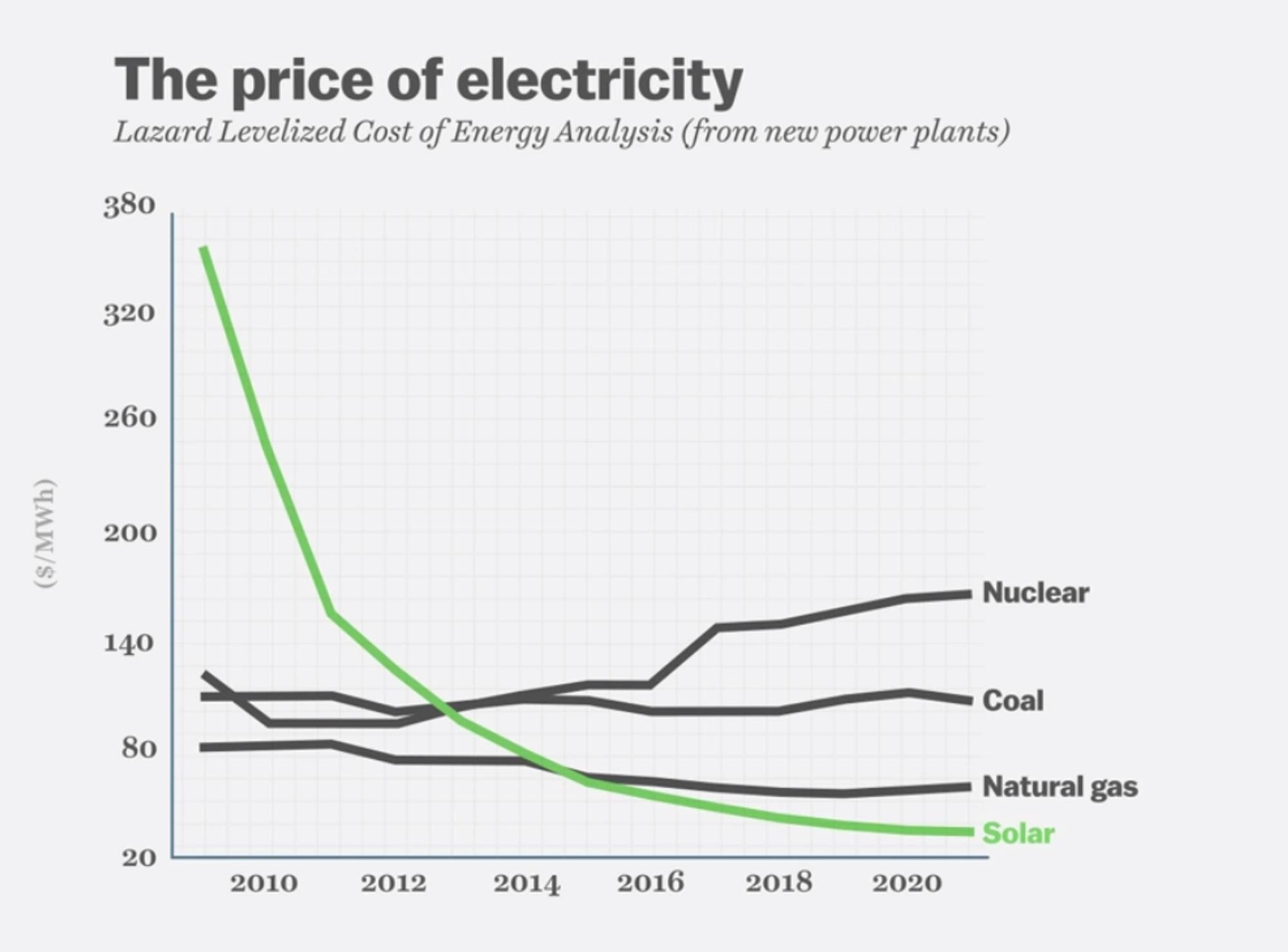 As a result, the price to generate electricity via solar power has dropped below even natural gas by 2023. While this has been an exceptional shift in the cost of energy generation, that is only one part of the broader energy supply chain.