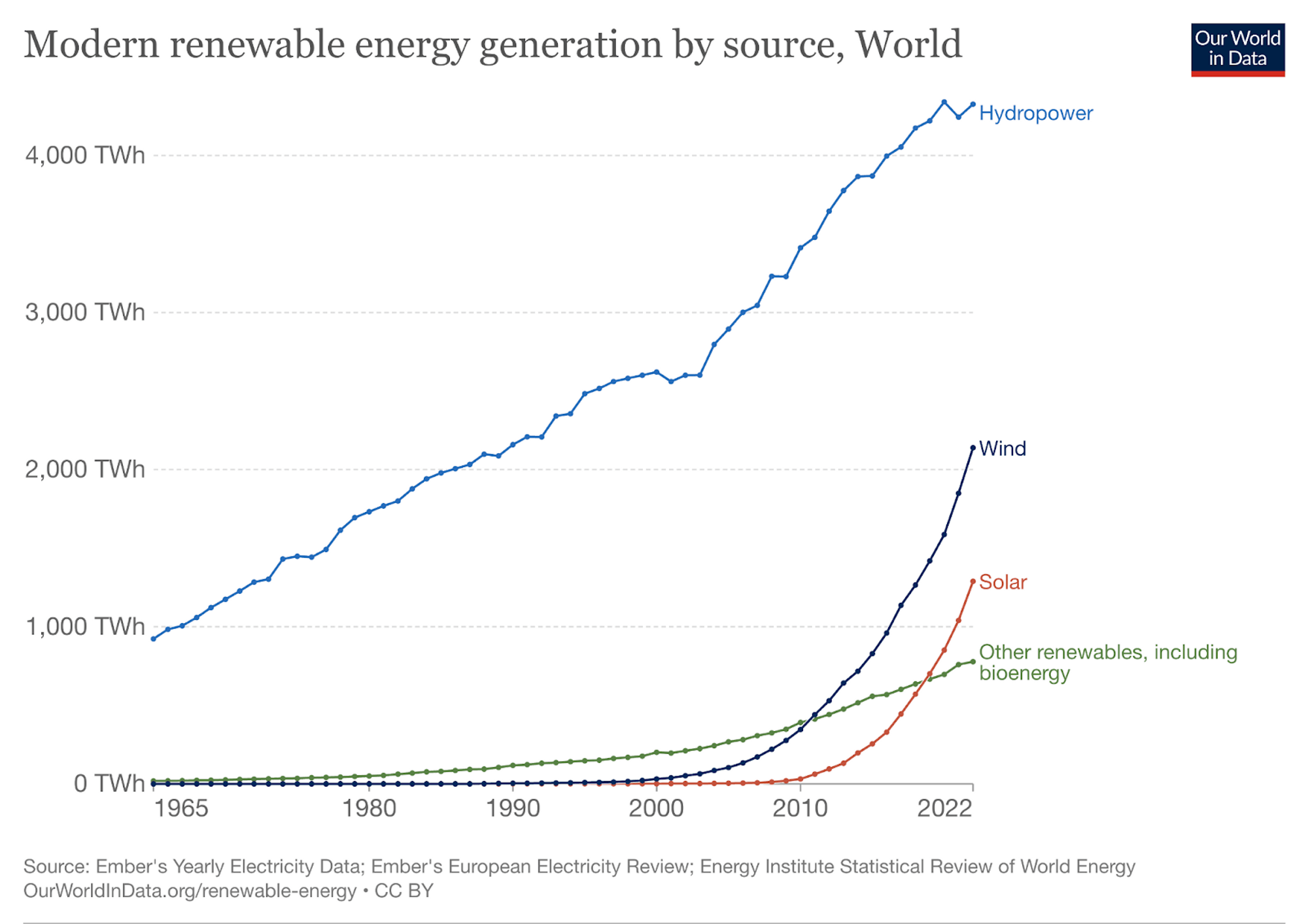 While advances in solar and wind have been significant over the last few years, hydroelectric power has been a steady and reliable contributor to renewable energy for a long time. While solar and wind emerged in the 19th and 20th centuries, people have been powering things with water for a long time. As of 2022, hydro-generated electricity provided ~16% of the power supply globally, 3x more than wind and 6x more than solar.