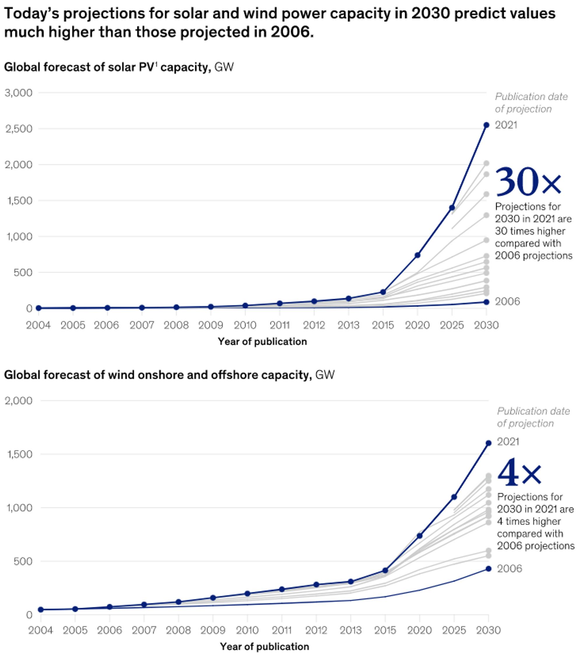 Domestic policies around the world: while countries in Europe, the US, and China are making some proactive efforts towards renewables, it isn’t enough. Reducing market risk and incentivizing investments (often in the form of removing red tape) through policy are essential. For 1.5C targets to be reached, the share of renewables in global electricity generation must increase from 29% to 60% by 2030. That will require additional countries to take similar measures.