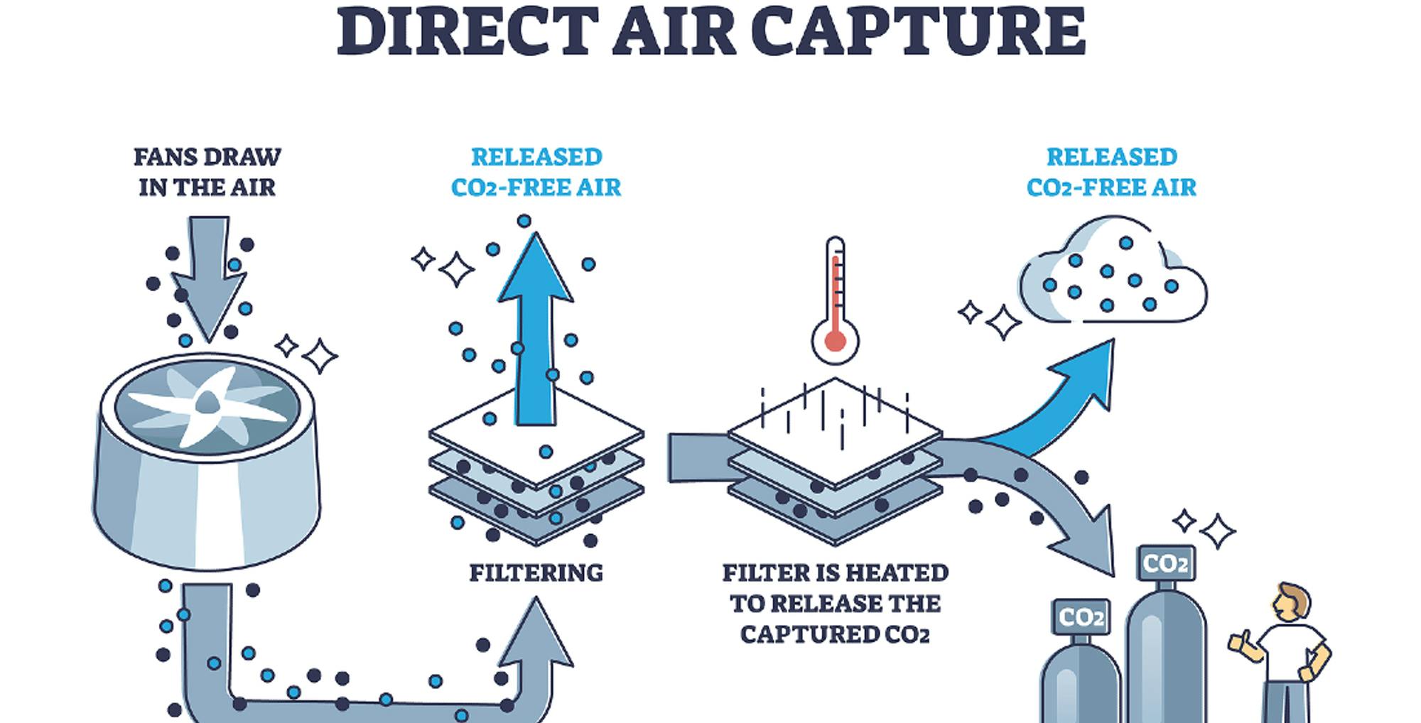Direct air capture (DAC), the process of removing carbon dioxide which has already made its way into the atmosphere, uses industrial fans to pump large amounts of air through a system which identifies and filters carbon dioxide, then releases the carbon dioxide-reduced-air back into the environment. The idea for this was generated by a chemical engineer at Arizona State University in 1999 but did not become scalable until recently, with one the first large-scale DAC plant being commissioned in 2022.