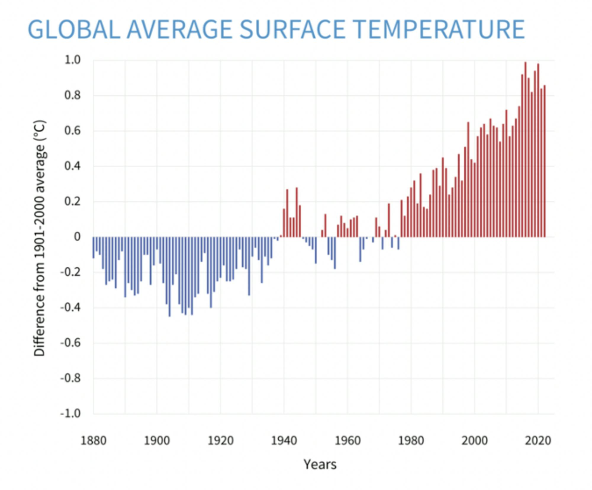 But what are “pre-industrial levels?” In 2022, the average global temperature was 58.6 °F, about 1.9 °F higher than the mid-late 1800s, which is generally considered the tail end of the Industrial Revolution (1760-1840). According to an article published by NASA in 2017: