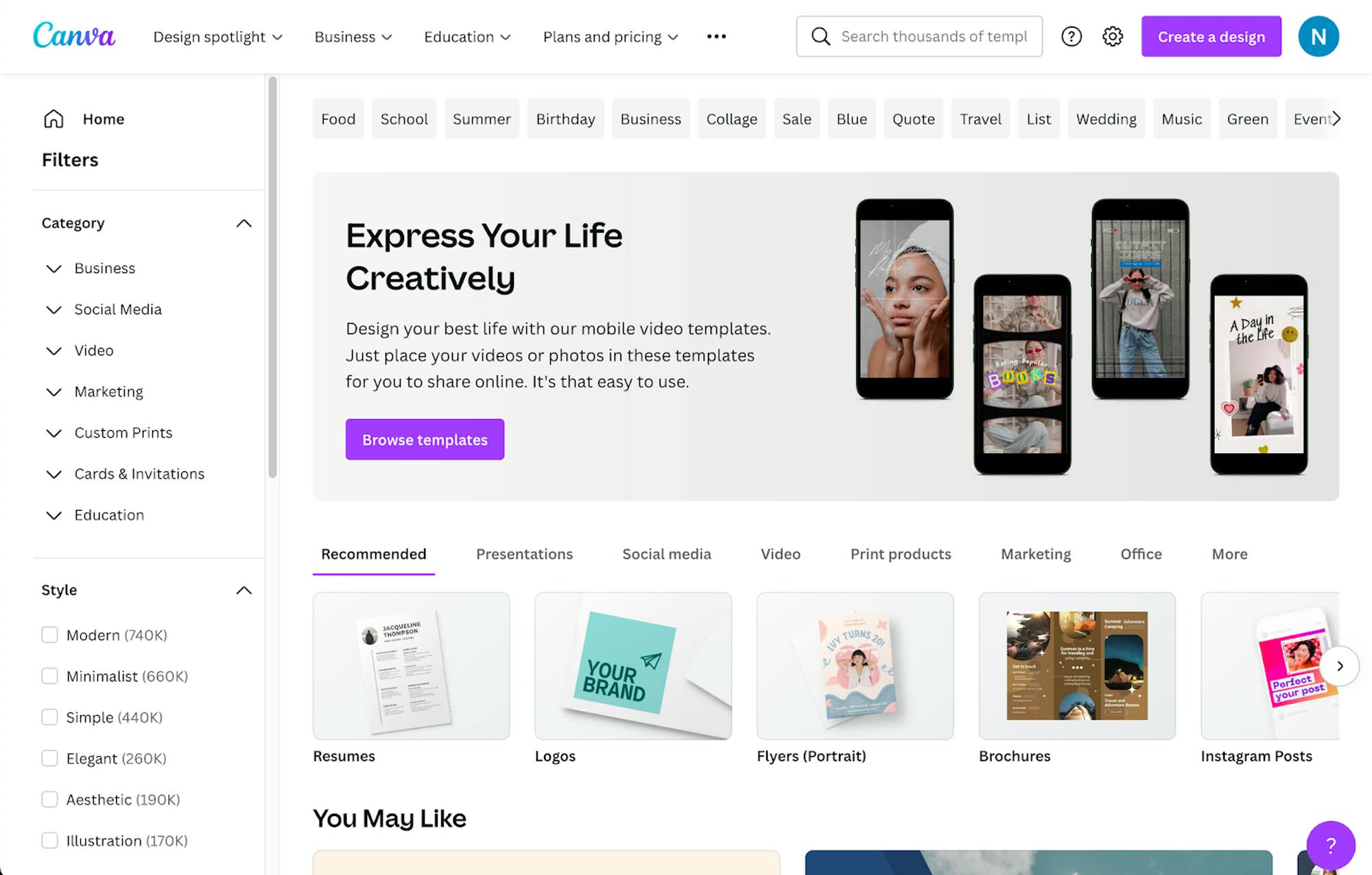 Canva Creators is a marketplace for creators to share designs with Canva’s 65+ million users and monetize their design templates. A committee reviews all design templates before publishing them on the marketplace. Canva also offers Canva Print, an on-demand printing service. To start offering Canva Print, Canva partnered with companies already offering printing services such as Staples Canada. Popular print products offered through Canva Print include invoices, yard signs, banners, cards, business cards, canvas prints, and more.