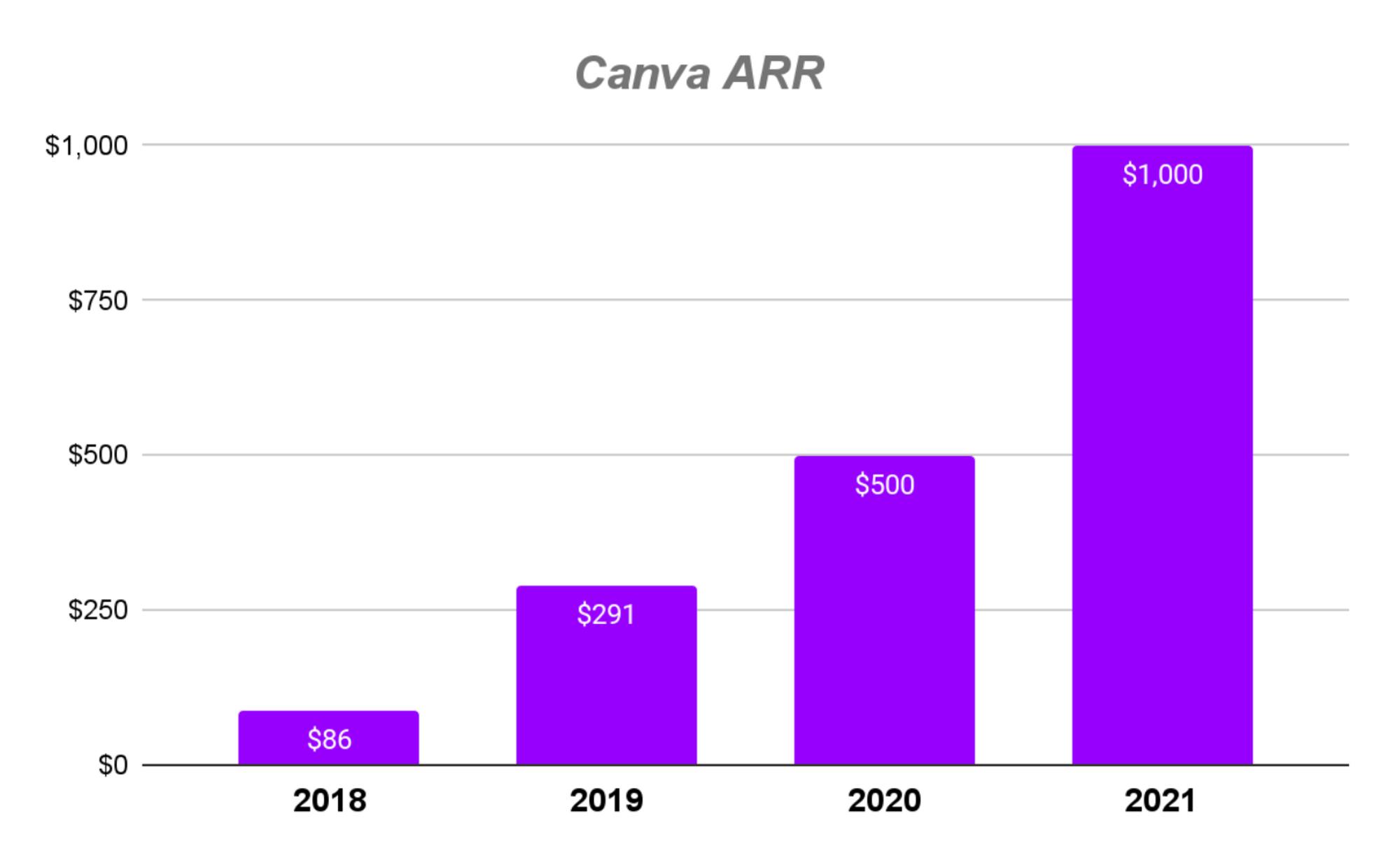 The business has grown to over $1 billion in ARR as of 2021, and is continuing to grow rapidly both in revenue and users, with 30 million monthly active users as of 2020. For context, Adobe took 17 years to reach $1 billion in revenue, while Canva took half that time. Canva has built their business serving citizen designers like content creators, marketers, and entrepreneurs and other everyday people trying to communicate visually, as opposed to more sophisticated professional designers; Canva also has over 4.4 million users paying for their Teams product, and 85% of Fortune 500 companies are among Canva’s customers, including FedEx, L’Oréal, and Salesforce.