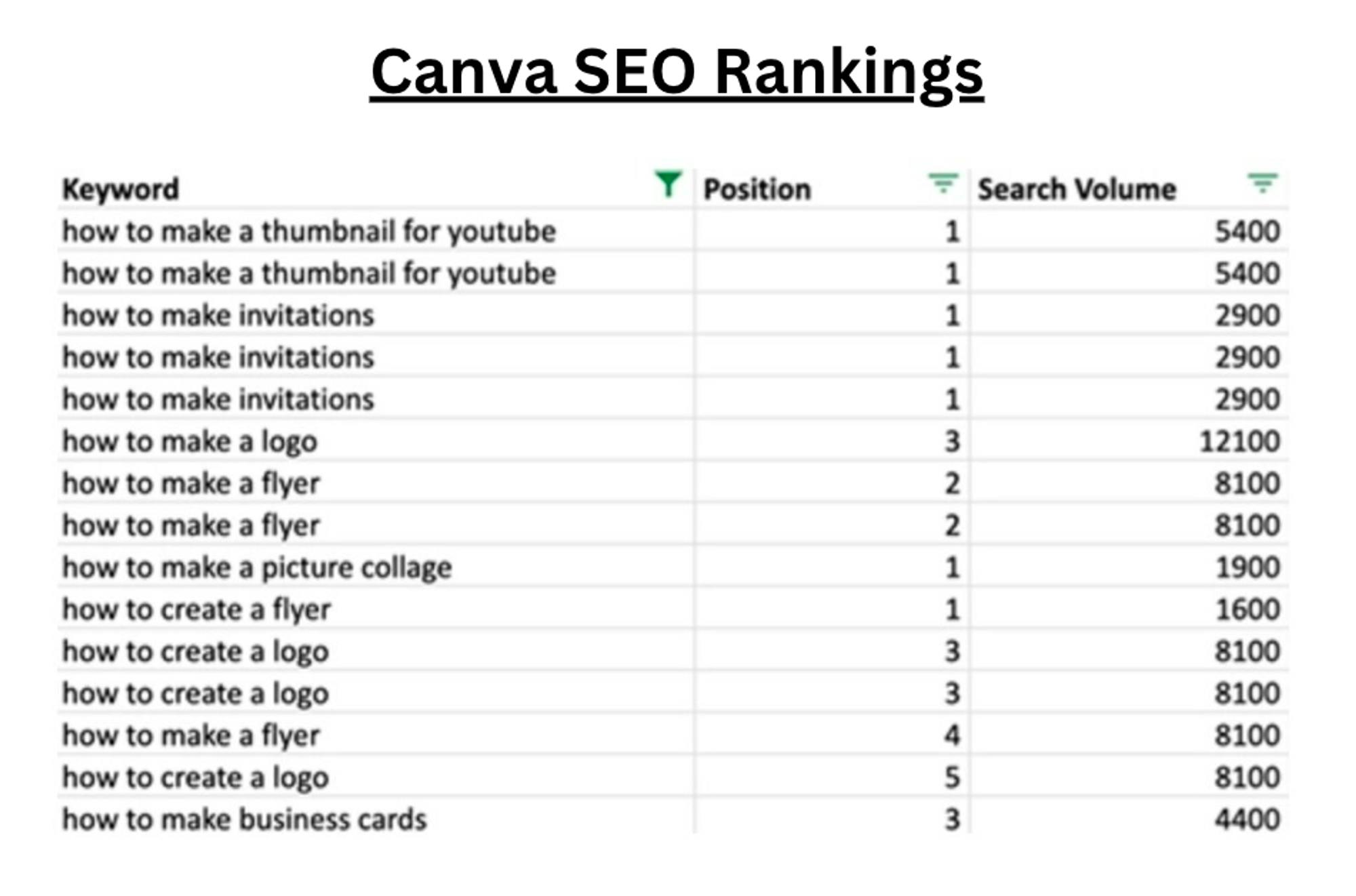 Leadership in Design Mindshare: The flexibility of Canva’s product to extend to all types of design allowed the company to address all types of designers. Rather than needing to own the market on specific types of design, it could focus on addressing all types of design with its marketing. Specifically, Canva has executed an extensive SEO strategy to associate their product with every design “job to be done” that a user could have.