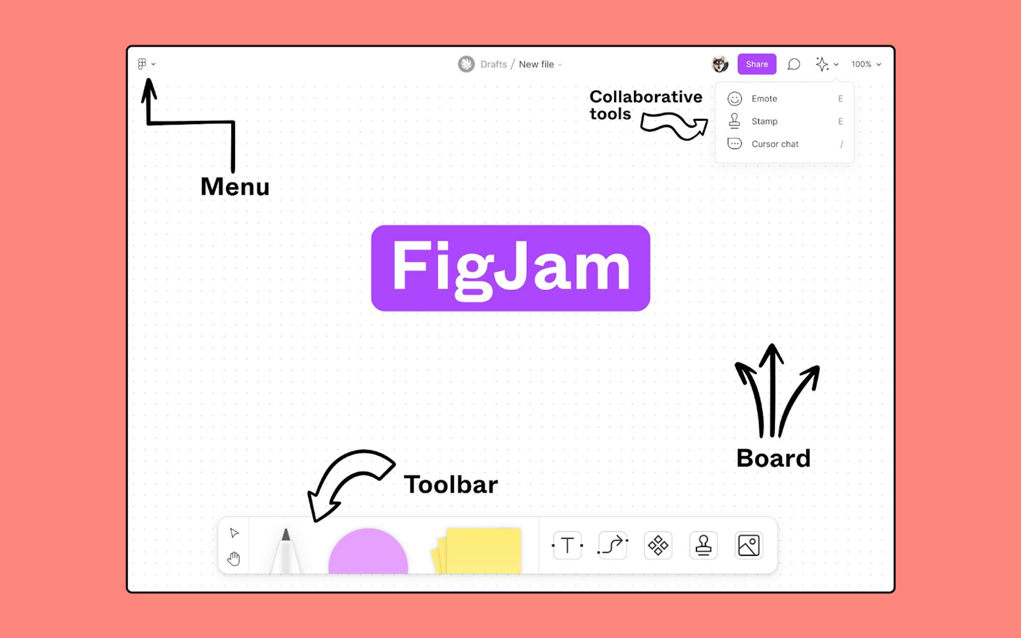In April 2021, Figma launched FigJam, a whiteboarding tool, when the company realized that designers were also using its design platform as a space to brainstorm, workshop, and share ideas. FigJam allows teams to more easily brainstorm, plan, and collaborate as part of the design process.