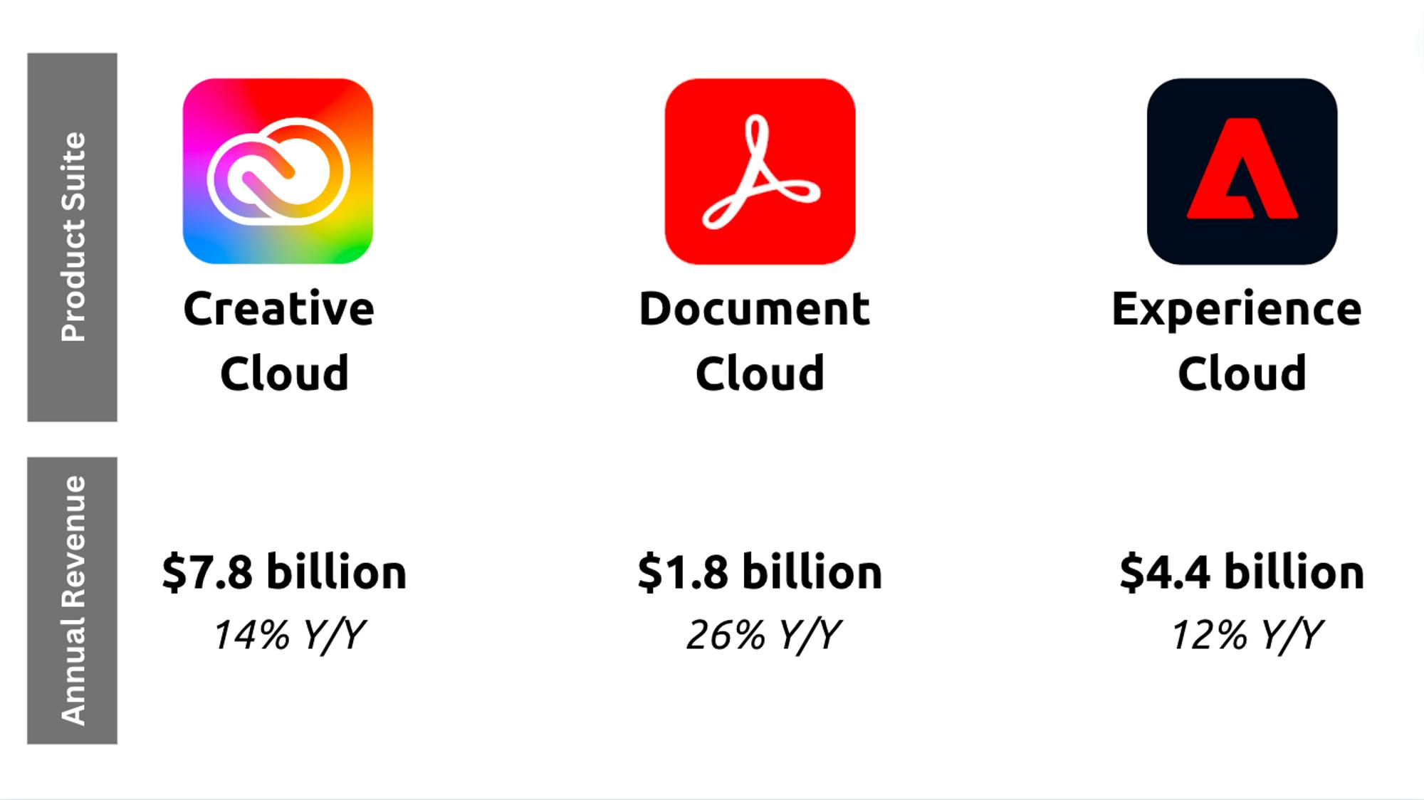 More than 50% of Adobe’s revenue comes from the Creative Cloud. Estimates put Creative Cloud’s subscriber base at ~24 million across its core products, which include: