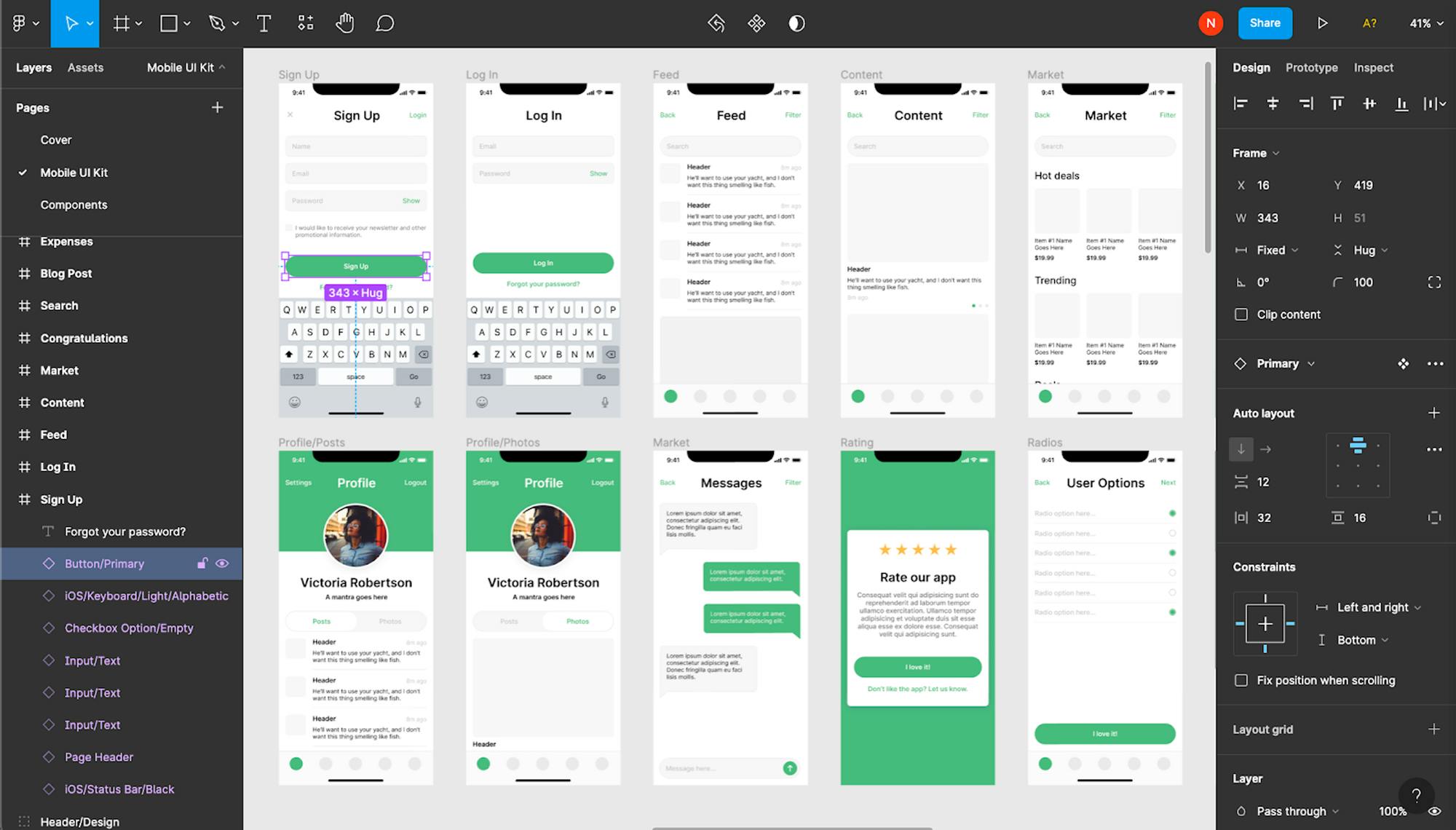 Today, Figma’s products extend from brainstorming to design systems. Figma’s initial core product focused on the design process, offering the ability to design wireframes and mockups, create prototypes, and quickly handing off completed designs to developers.