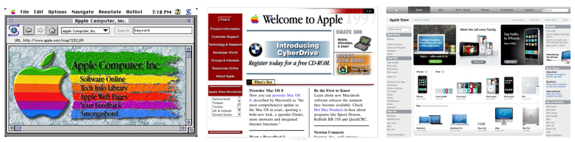 The same visual evolution is evident in Apple’s website as in the evolution of the Coca-Cola logo or the evolution of a fashionably furnished living room over time.