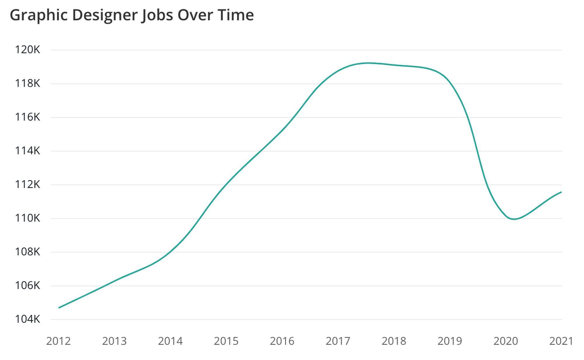 The number of jobs for designers throughout the tech industry ballooned in that same period. And, while they saw a COVID correction like a number of other roles, design roles including graphic design, product design, and UI/UX design roles are among the most in-demand tech roles for 2023.