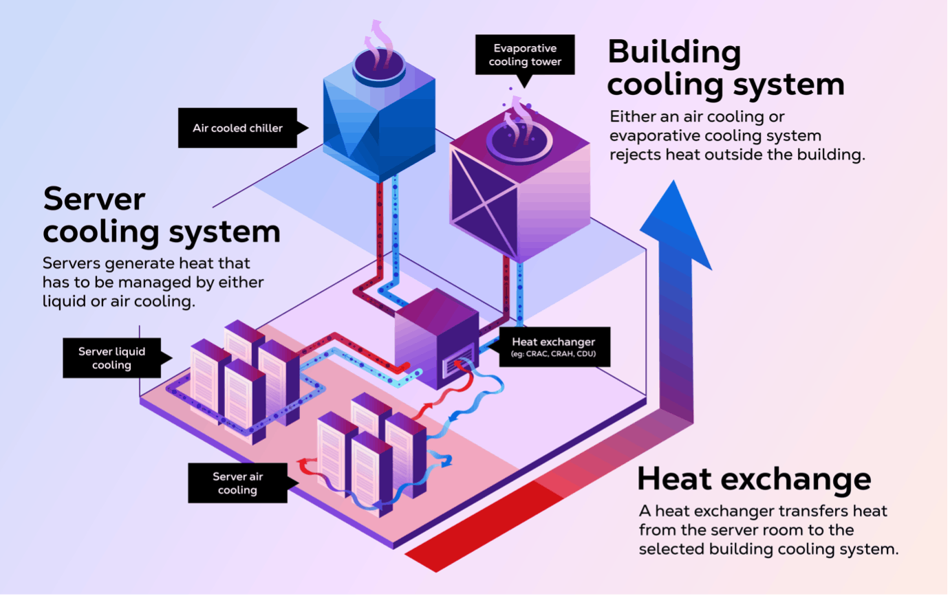 Alternatively, less water-intensive cooling systems are also being explored. Data centers exploring closed-loop cooling systems aim to reduce their water dependence by reusing cooling water multiple times. Some companies are even exploring free cooling, a method of cooling data centers with circulation of outside air for facilities in colder climates.