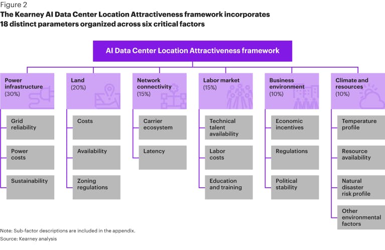 Land parcels available to accommodate projects of this size have seen prices increase by up to 40%. According to one report, there are three main ways that real estate companies participate in the development of AI data centers: (1) purchasing or leasing land that could be attractive to data center developers, (2) “flipping” land eligible for data centers by outfitting plots of land with basic power infrastructure, and (3) building out the shell of data centers, including buildings or “dark shells”, and even network connections or “powered shells”, and selling or leasing those properties to data center companies. Data center flippers have seen land sell for multiples of the original price. In OpenAI’s RFP for Stargate, the company laid out the quantitative and qualitative considerations it would want a potential development partner to make about the project.
